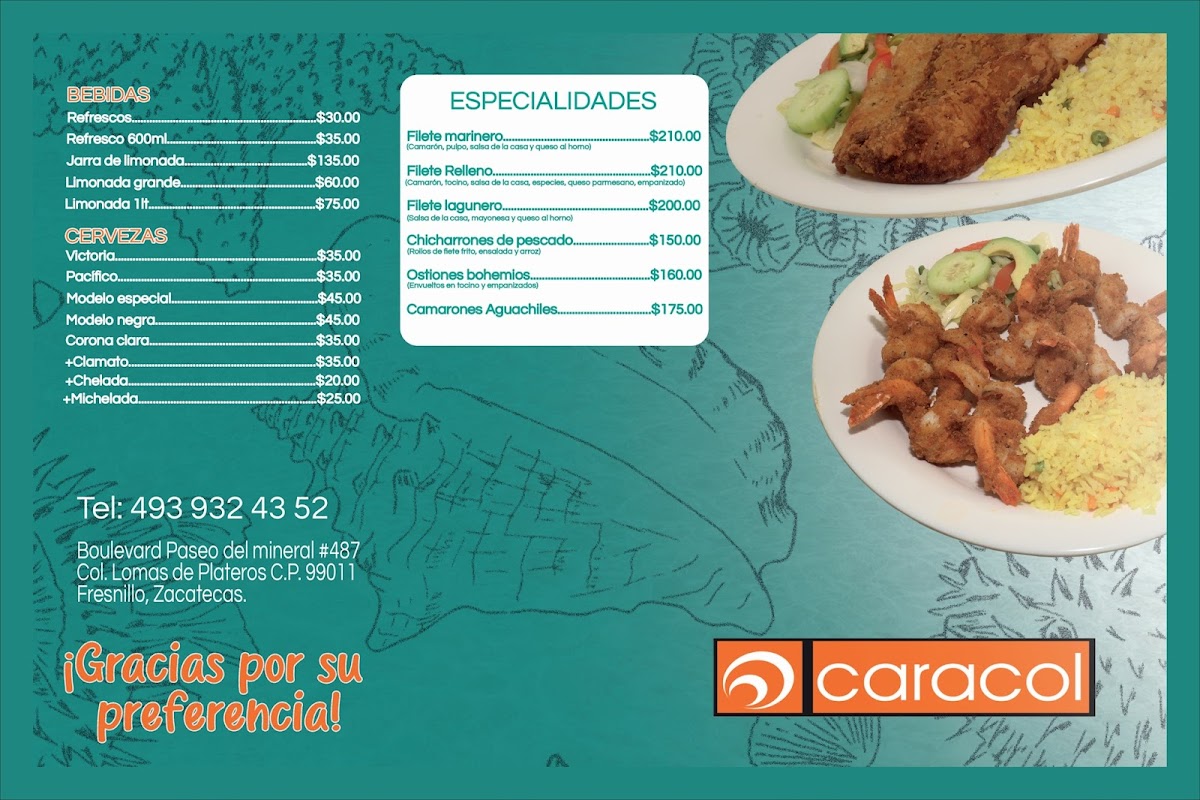 El Caracol’s menu offers a delightful range of fresh seafood dishes that capture the essence of coastal Mexican cuisine. The Filete Al Mojo de Ajo stands out as a flavorful and aromatic option, showcasing tender fish fillets cooked in garlic butter. For seafood enthusiasts, the Cóctel Campechano Pulpo Y Camaron combines octopus and shrimp in a refreshing and tangy cocktail, while the Camarones Rellenos offers stuffed shrimp that burst with rich, savory fillings. Those looking for a lighter yet satisfying bite can enjoy the Tostada de Ceviche, a crispy tortilla topped with zesty and fresh ceviche. The Mojarra Frita, a whole fried tilapia, is perfectly crispy on the outside, tender on the inside, and full of flavor. The Filete de Pescado En Salsa Verde is another must-try, with a succulent fish fillet complemented by a tangy green sauce that elevates the dish. To accompany these dishes, the Cerveza Pacifico Suave provides a crisp, refreshing finish that perfectly balances the richness of the seafood. Overall, El Caracol offers a diverse and satisfying menu for anyone craving authentic seafood dishes, each crafted with freshness and bold flavors.